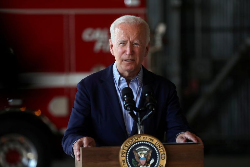 米下院歳入委員会は15日、バイデン大統領が掲げる3兆5000億ドル規模の歳出法案の財源を賄うために与党民主党が提出した富裕層と企業に対する増税法案を可決した。写真はマザー空港で演説するバイデン氏。9月13日、カリフォルニア州で撮影(2021年 ロイター/Leah Millis)